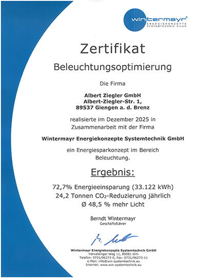 Im Dezember 2025 realisierten wir ein umfangreiches Energiesparkonzept für LED-Industriebeleuchtung bei der Albert Ziegler GmbH in Giengen an der Brenz.